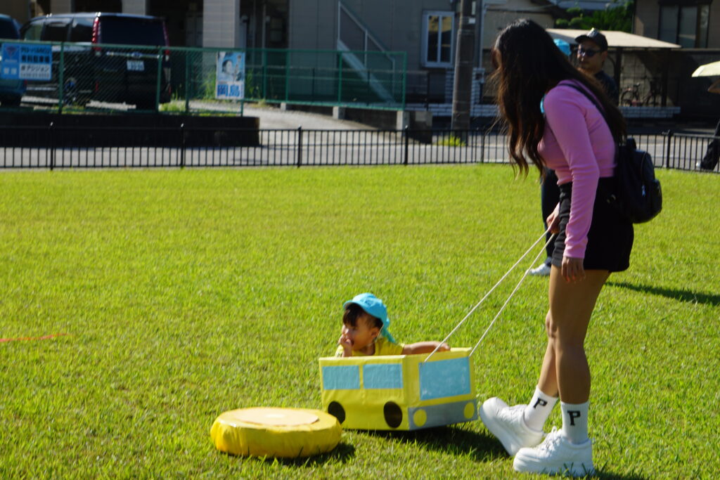 “しろくまちゃんのパンケーキ”ではバスの中に入って保護者の方に引っ張ってもらって出発!