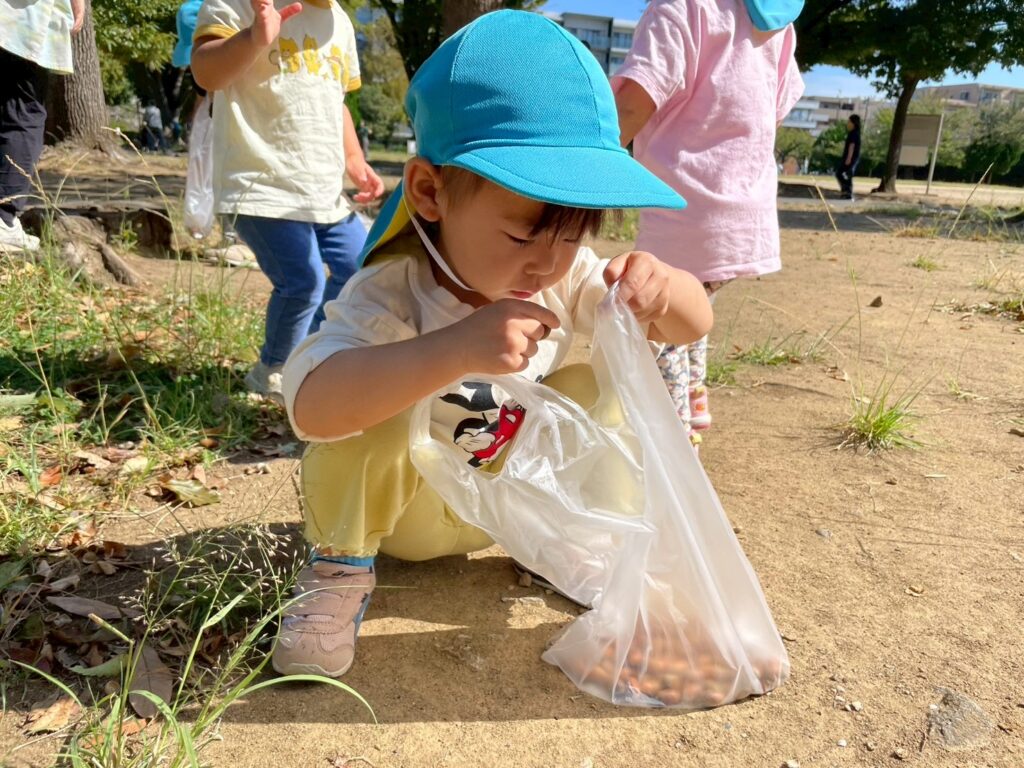 袋を持ってドングリ拾い✨