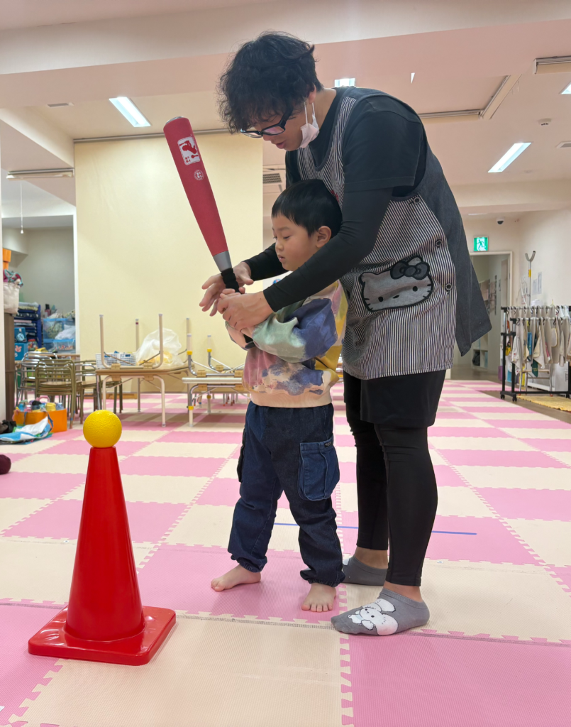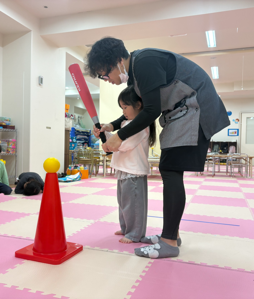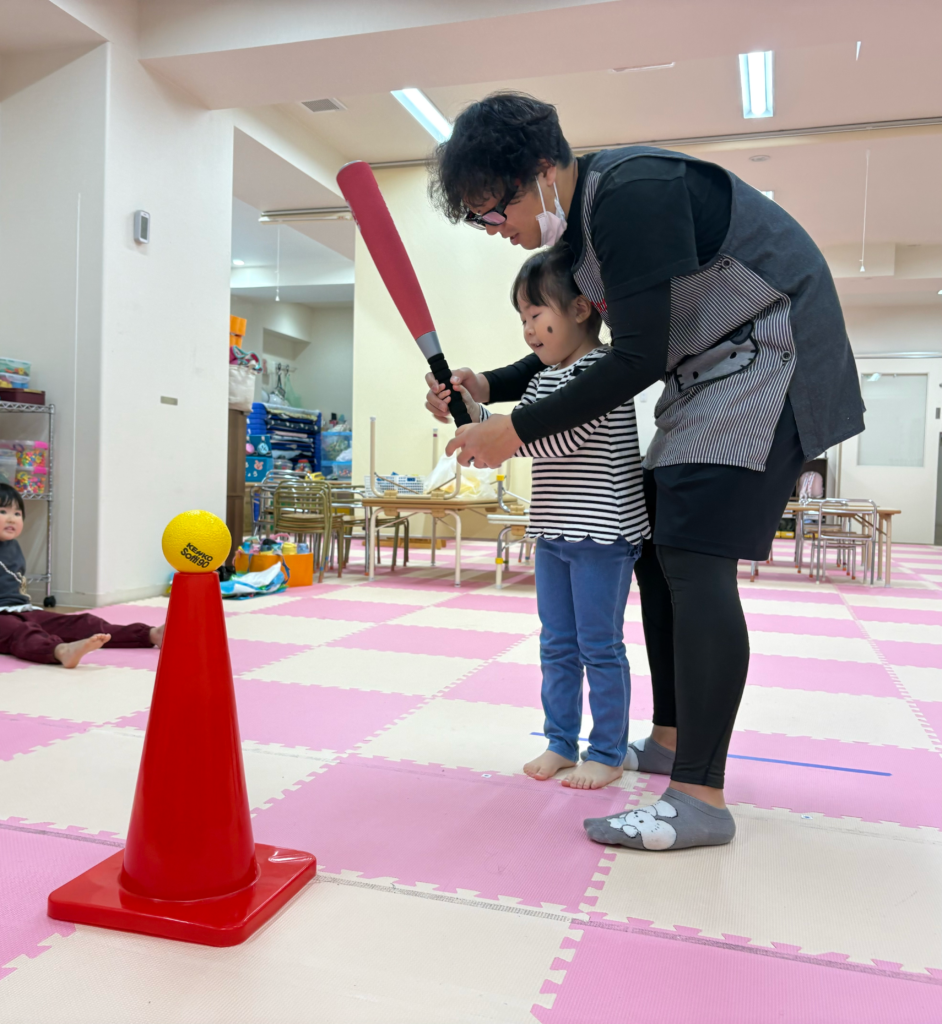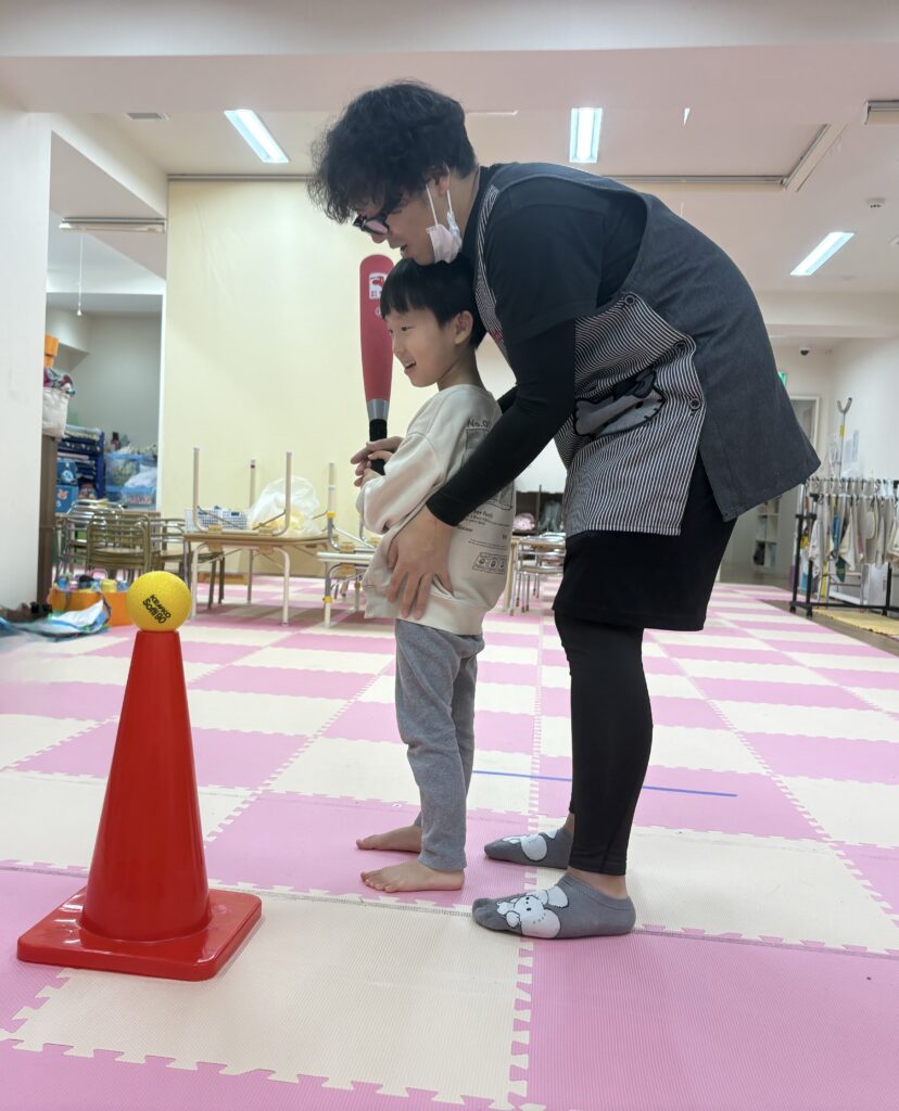 その時にバットやボールをいただいたので、3歳児クラスのお友だちも挑戦です✨