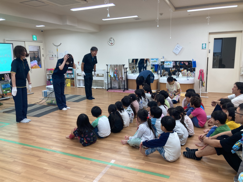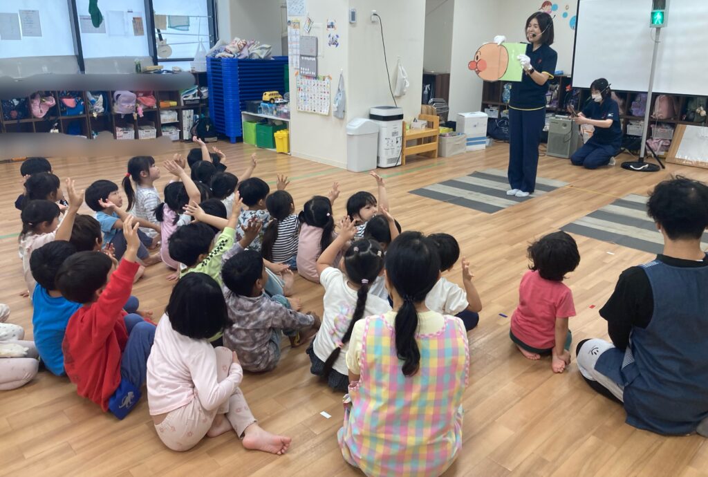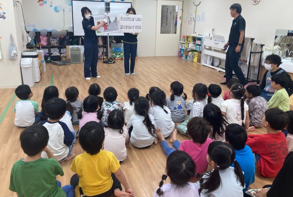 『交通安全教室』には、くじら組・しろくま組・ぞう組の子ども達が参加しました。