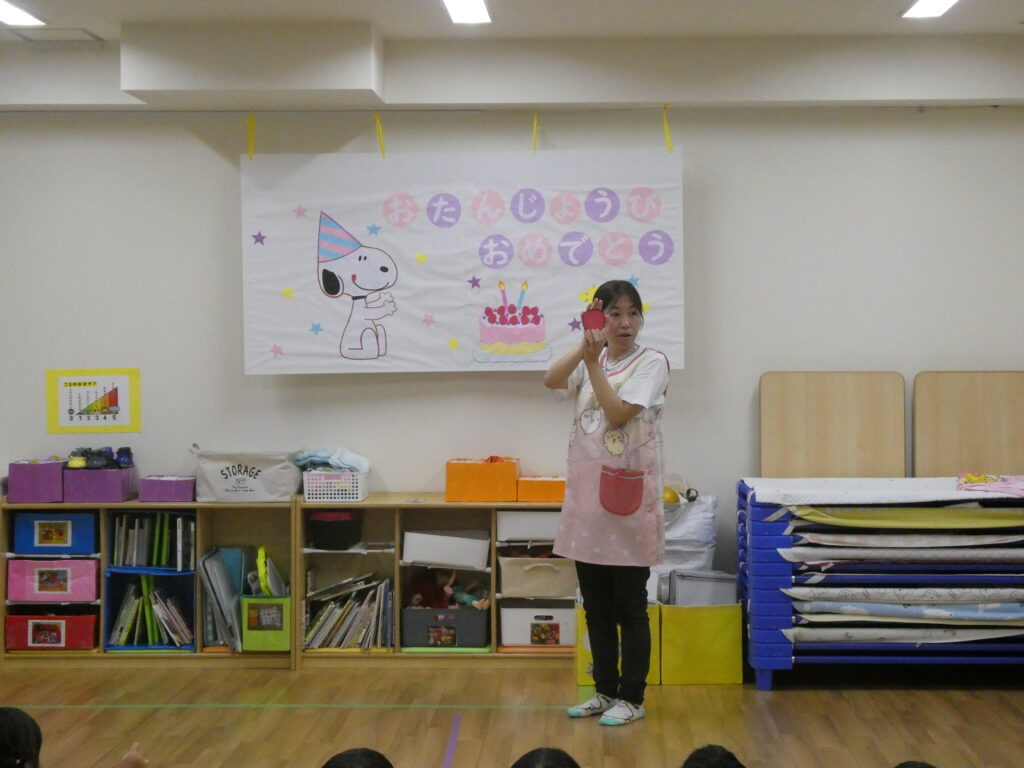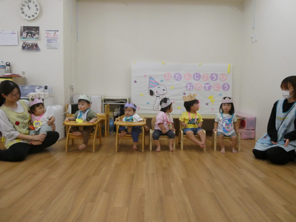 8月生まれのお友だちはたくさんいるので、0・1歳児と2歳以上児に分かれてお誕生日会を開催しました✨